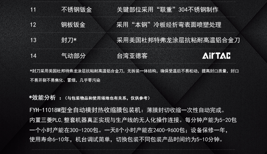 擁有多項(xiàng)專利技術(shù) 數(shù)千平標(biāo)準(zhǔn)廠房 批量標(biāo)準(zhǔn)化生產(chǎn) 可定制開(kāi)發(fā)和自動(dòng)化流水線搭建! 超前技術(shù)團(tuán)隊(duì) 先進(jìn)加工工藝 高精度加工設(shè)備 近20年專業(yè)研發(fā)經(jīng)驗(yàn)不斷改進(jìn)、創(chuàng)新、突破!我們定位于專注做中高端全自動(dòng)熱收縮膜包裝機(jī),請(qǐng)不要拿我們和不同定位的廠家對(duì)比!我們是源頭工廠…