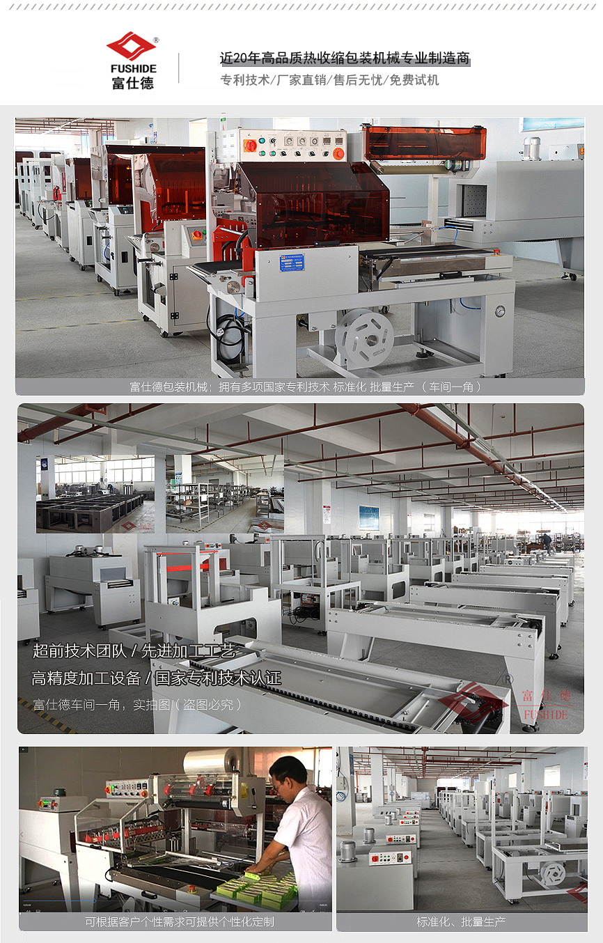 多年專注研發(fā)、生產(chǎn)熱收縮膜包裝機系列產(chǎn)品:(熱收縮包裝機械專家、全自動包裝機設(shè)計專家、品種齊全)適合各行各業(yè),各種不同形狀、單件、組合包裝產(chǎn)品提供針對性設(shè)備使用的機型,并可根據(jù)實際情況為客戶定制開發(fā)新產(chǎn)品。