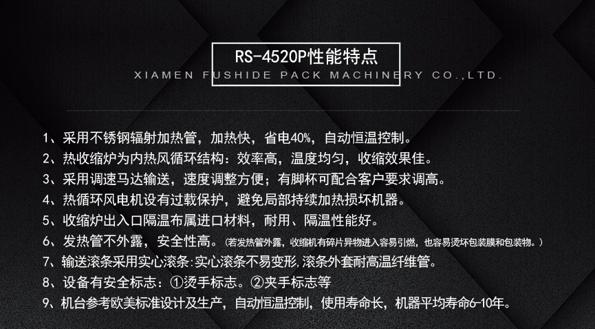 擁有多項(xiàng)專利技術(shù) 數(shù)千平標(biāo)準(zhǔn)廠房 批量標(biāo)準(zhǔn)化生產(chǎn) 可定制開發(fā)和自動(dòng)化流水線搭建! 超前技術(shù)團(tuán)隊(duì) 先進(jìn)加工工藝 高精度加工設(shè)備 近20年專業(yè)研發(fā)經(jīng)驗(yàn)不斷改進(jìn)、創(chuàng)新、突破!我們定位于專注做中高端全自動(dòng)熱收縮膜包裝機(jī),請(qǐng)不要拿我們和不同定位的廠家對(duì)比!我們是源頭工廠…