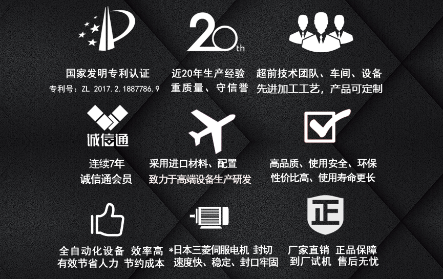 擁有多項(xiàng)專利技術(shù) 數(shù)千平標(biāo)準(zhǔn)廠房 批量標(biāo)準(zhǔn)化生產(chǎn) 可定制開發(fā)和自動(dòng)化流水線搭建! 超前技術(shù)團(tuán)隊(duì) 先進(jìn)加工工藝 高精度加工設(shè)備 近20年專業(yè)研發(fā)經(jīng)驗(yàn)不斷改進(jìn)、創(chuàng)新、突破!我們定位于專注做中高端全自動(dòng)熱收縮膜包裝機(jī),請不要拿我們和不同定位的廠家對比!我們是源頭工廠…